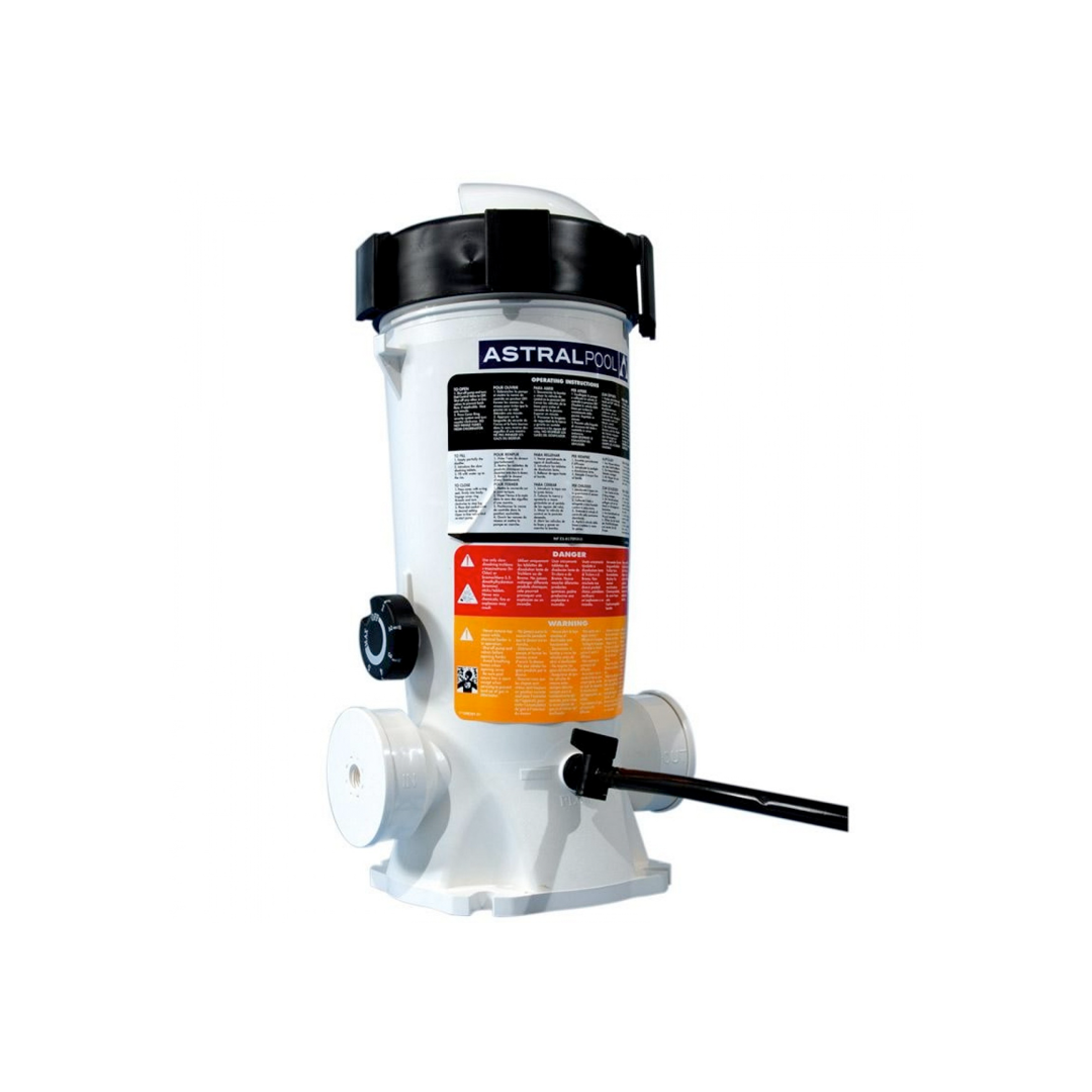 Le chlorinateur automatique en dérivation Astralpool est un équipement universel, compatible avec la plupart des systèmes de filtration de piscines, qu’ils soient à sable, à cartouche ou à diatomées. Il est conçu pour s’intégrer parfaitement sur le circuit de refoulement, après le filtre, pour une désinfection optimale. Il est compatible avec tous les types de piscines et de revêtements, et peut être utilisé avec des galets de chlore lent ou de brome.